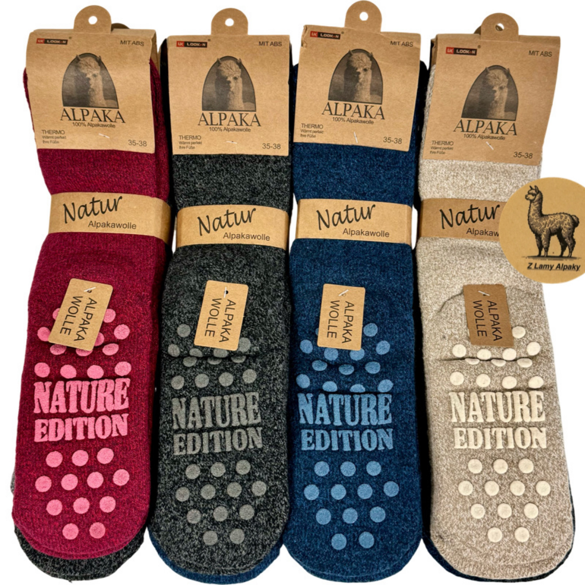 Dámské termo ponožky z 100% alpaka vlny – 3 páry, protiskluzové, extra teplé