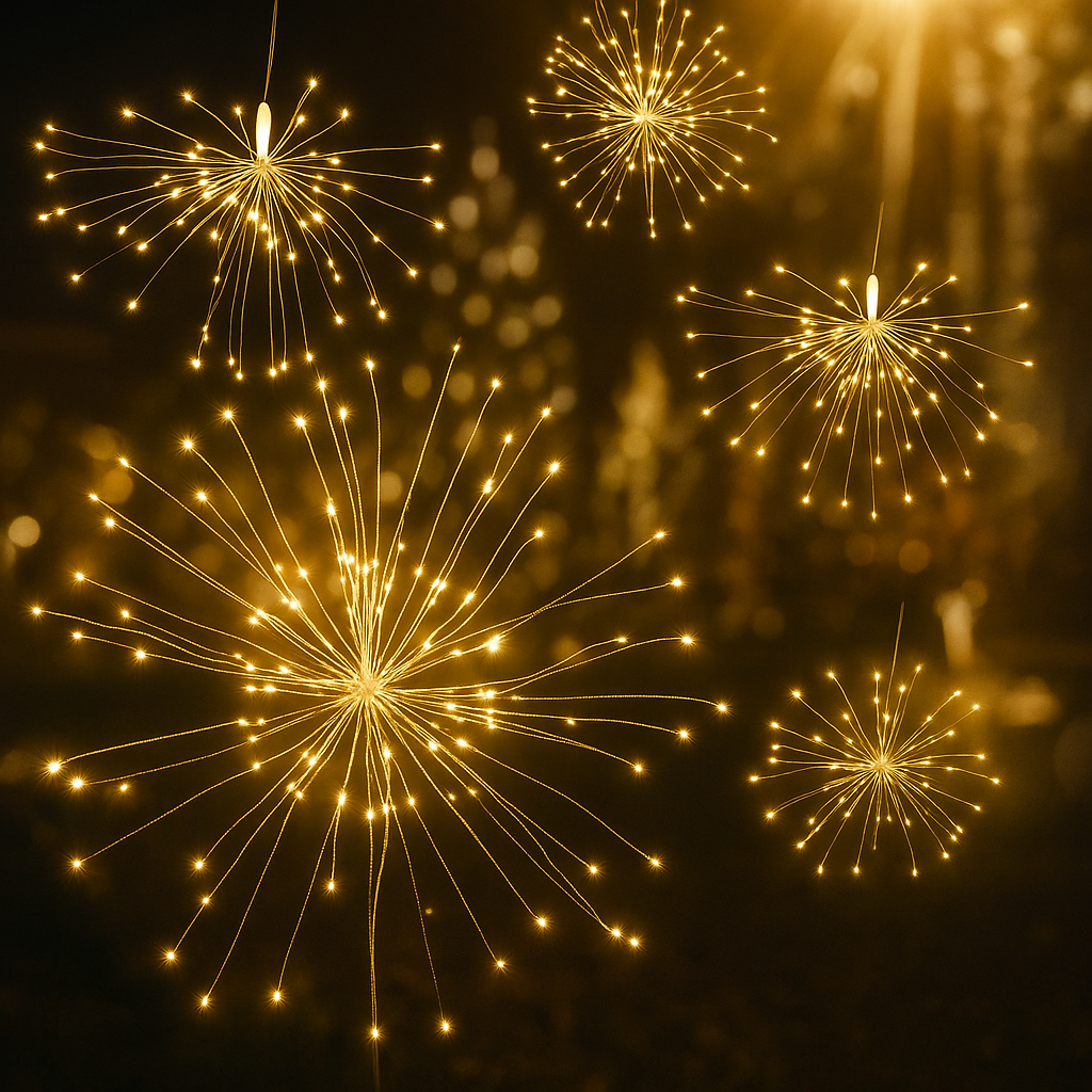 Venkovní ohňostroj barev nebo vánoční prskavka přímo u vás doma? Sada obsahuje praktické háčky k zavěšení a 10 ks světel (ohňostrojů). Jedná se o novinku která vypadá opravdu úžasně. A je průkopníkem do světa 3D vánočního led osvětlení.